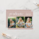 Celebrate their high school graduation with this three foto modern graduation announcement card. Customize with three senior fotos, name and the name of their school. This class of 2022 graduation announcement card is perfect for a high school graduation and can be used for a guy or girl.