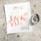 Diese modernen Gefälligkeitstaschen sind mit dem Wort "danke" in Korallen mit abstraktem Design in Korallen- und Grautönen versehen. Einfach mit den Vornamen des Ehepaares personalisieren.