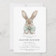 Modern Watercolor Easter Dinner Invitation features an adorable watercolor bunny all decked out in his pastel green polka dot bowtie.