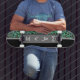 Benutzerdefiniertes Skateboard mit coolem, abstrakten Design in Schwarz, Grau und Grün. Passen Sie das moderne Board mit Ihren gewünschten Text oder Buchstaben an. Aus Ahornholz. Auch macht ein nettes Geschenk. Verwenden Sie die Vorlage, um ein eigenes Skateboard zu erstellen.