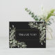 Elegante grüne Blätter Hochzeit danke Ihnen Karte mit delikaten Aquarell-Blätter umrahmt Ihre Dankesbotschaft Set in moderne Typografie auf einem schicken schwarzen Hintergrund. Sie können mit Ihrer eigenen Dankeschön-Nachricht auf der Rückseite personalisieren oder wenn Sie es vorziehen, Ihre eigene handgeschriebene Nachricht hinzuzufügen einfach den Text löschen. Ein perfekter Weg, um sich bei Ihren Gästen zu bedanken! Entwickelt von Thisisnotme©