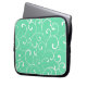 Ein skurriles, modernes Design mit weißem Curl-Muster vor einem Aquahintergrund. Diese Computerhülle ist eine attraktive Möglichkeit, Ihren Laptop oder Ihr Tablet zu schützen.