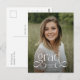 Celebrate a proud graduation milestone with this modern minimalist announcement postcard featuring a beautiful portrait and trendy script overlay. The simple design highlights the grad graduate moment and the class of year, perfect for high school or college celebrations. Use it as a stylish announcement postcard or for graduation party invitations shared with friends and family. Personalize the photo and details to create a meaningful keepsake today.