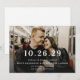 This modern yet elegant save the date announcement features a horizontal photo background with your wedding date and text in white. You can customize this design even further by changing the backer color and/or adding another photo or additional text to the backer.