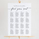 Moderner Script-Hochzeitsplan. Begrüßungszeichen. Personalisiert Einfache Minimalistische Sitzkarte für 160 Gäste (16 Tische). Klicken Sie einfach auf den Link, um den Text anzupassen, der unter dem Bereich für die Textpersonalisierung rechts angezeigt wird, und wählen Sie Ihren eigenen Farbhintergrund aus. Dieses Schild Poster-Template macht es einfach und schnell, atemberaubende Ergänzungen Ihrer Hochzeitsdekoration zu schaffen. Die Zeichen können vergrößert werden, es gibt viele Größen zur Auswahl, sowie Optionen für die individuelle Gestaltung und Anpassung.