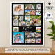 Erstellen Sie ein modernes, einzigartiges Collage Poster (in einer vorgeschlagenen Größe von 18" x 24"; in anderen Größen verfügbar) oder eine Wandkunst, indem Sie diese leicht hochzuladende Collage-Vorlage für Fotos mit 19 quadratischen und rechteckigen Bildern verwenden, um eine Vielzahl von Fotos zu befriedigen und mit Ihrem eigenen Text personalisiert zu sein. Der bearbeitbare Text wird in einer vorgeschlagenen und wechselbaren handgeschriebenen Pinselkalligraphie mit Untertitel oder Zusatztext gezeigt. Zeigen Sie Ihre Fotografie oder kreieren Sie ein unvergessliches, bedeutsames Geschenk oder bewahren Sie Ihren Aufenthalt für eine Familie oder eine Person, um besondere Anlässe wie Geburtstag, Jahrestag oder Hochzeit zu feiern, Meilensteine wie Abschluss und Ruhestand zu begehen oder eine Gedenkfeier als Beileid-Bereavement-Geschenk zu machen. HILFE: Für Hilfe bei Designänderungen oder Personalisierungen, Farbänderungen, Größenanpassungen oder der Übertragung des Designs auf ein anderes Produkt wenden Sie sich bitte an den Designer, BEVOR er Bestellung über die Registerkarte Zazzle Chat MESSAGE unten oder per E-Mail an makeitaboutyoustore@gmail.com.