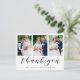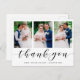 Schicken Sie Ihren Fotos und Freunden eine maßgeschneiderte Collage mit Dankeschön an Ihre Familie und Freunde, um ihnen für den Besuch Ihrer Hochzeit zu danken. Dieses elegante Design-Template verfügt über drei Ihrer Fotos gerahmt in Weiß. Unten in schwarzer Kalligrafie-Skript steht "Danke" mit Ihrem Namen und Datum, damit Sie personalisieren können. Die Rückseite der Karte hat eine Nachricht und Unterschrift, die durch einen Sprig von Aquarell eucalyptus grün betont wird. Das war eine Freude für dich zu erschaffen. Glückwunsch auf deiner Ehe! Designed by artist ©Susan Coffey.