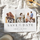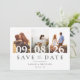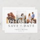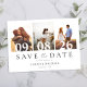 Erstellen Sie Ihre eigene Hochzeit speichern Sie die Datumskarten mit 3 Ihrer Lieblings-Fotos. Modernes, mutiges typografisches Design mit einfacher 3-Foto-Collage.