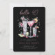 Moderne Glitterie 40. Geburtstagsfeier - mit funkelnden Cocktails mit moderner Typografie und einem kleinen Glitzer, der hineingeworfen wird. Silber und Rosa sind auf schwarzem Hintergrund dramatisch. Die Rückseite der Einladung ist die Koordination des Glitzer für eine festliche Touch.