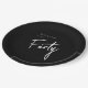 Maßgeschneiderte Teller aus schwarzem Papier für 40. Geburtstagsfeiern im Party. Passen Sie Ihren eigenen Namen an. Farben können im Designwerkzeug bearbeitet werden. Bitte nutzen Sie den unten stehenden Button für die Nachricht, um weitere Anpassungen und spezielle Anfragen zu erhalten. © Zoe Chapman Design