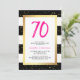 Diese bezaubernden, modernen 70. Geburtstags-Party Einladungen kennzeichnen trendy Schwarzweiss-Streifen mit Imitatgoldconfetti und einem zusammenpassenden Rahmen und helle rosa Typografie an der Spitze mit ihrem Alter.