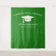 Moderne Abschluss feiern grüne Kulisse für Foto-Gelegenheiten! Glitzer oben und unten, goldene Bänder von der oberen Kante, weiße Graduierungskappe und weiße Schriftzüge. Klasse in Gold Glitzer Schrift mit Vorlage des Jahres in grün. Jahr, Name und Schulname hinzufügen.