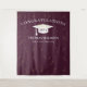 Moderne Abschluss Feste Maroon Kulisse für Foto-Gelegenheiten! Glitzer oben und unten, goldene Bänder von der Spitze, weiße Graduierungskappe und Schrift. Klasse in Gold Glitzer Schrift mit Vorlage des Jahres in Mond. Jahr, Name und Schulname hinzufügen.