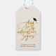 Und so beginnt das Abenteuer! Moderne Abschluss-Feier Geschenk-Tag mit einem eleganten Skript-Kalligraphie-Design, eine steil ansteigende grad und Ihre individuelle SMS-Nachricht von Gratulationen an den Absolvent unten. Dies ist die goldene Farbversion mit einem schwarzen Rücken.