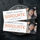 Mini Abschluss vernetzt Visitenkarten mit Ihrem Foto und dem Text "Graduate" in einem modernen Schriftart auf der Vorderseite zusammen mit dem Jahr- oder Schulnamen und Ihrem Namen. Fügen Sie Ihre Kontaktinformationen auf der Rückseite ein. Dunkelblau und orange Text. Alle Farben sind anpassbar.