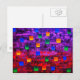 Postkarte mit einem modernen abstrakten, farbigen Acrylgemälde in lila, gelb, rot, grün und blau.