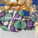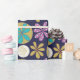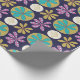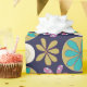 Vorstellung unserer exklusiven, zeitgenössischen gemusterten Geschenkpackung, die mit abstrakten Blumen und übergroßen Kreise Set vor einem reichen dunkelblauen Hintergrund geschmückt ist. Dieses lebendige und schicke Verpackungspapier bietet eine trendige Art, Ihre Geschenke mit Flair zu präsentieren, perfekt für jeden Anlass