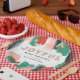 Moderne abstrakte Grafik Rot, Rosa + Grün fröhlich Pappteller