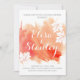 Moderne abstrakte Aquarellfarben Splash Korallenpfirsichpfirsich Duscheinladung mit einer handgemalten Aquarellfarbe spritzen mit Textur in den Farben Korallenorange und Pfirsich, Ahorn-Blätter in Weiß mit Korallenvenen und Text in Weiß und Grau. Diese elegante und stilvolle lässige Hochzeitseinladung ist ein individuell anpassbares Template für Ihre Hochzeit im Frühjahr, Sommer oder Herbst/Herbst. Beachten Sie, dass dies nur ein Bild von Aquarell ist und keine echte Textur. Für beste Ergebnisse wählen Sie Filz oder andere Papier.