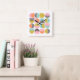 Diese Uhr besticht durch ein modernes, inspiriertes Design mit farbigen geometrischen abstrakten Formen.