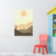 Moderne abstrakte Wüstenlandschaft in neutralen Tönen von Pfirsich, Braun und Taupe, mit Sonne, Hügeln und Kakteen-Silhouetten