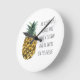 Moderne Ananas mit Aquarellfarbe & positives Zitat Runde Wanduhr