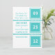 Frische und einfache, moderne Chic-Quadrate Ankündigung Datum freihalten in Türkis mit geometrischem quadratischem Design und Textboxen, die in den Tag, Monat und Jahr Ihrer Hochzeit eingeben. Dieses Mod-Design ist perfekt für ein Paar, das eine saubere, aber stilvolle Ankündigung will, die Freunde und Familien über ihre bevorstehende Hochzeit informiert. Einfach anzupassen, fügen Sie einfach die Details Ihrer Hochzeit in den Feldern zur Verfügung gestellt. Klicken Sie auf die Schaltfläche "Anpassen", um Schriftart oder Textfarben zu ändern.