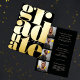 Diese moderne und elegante Ankündigung eines Abschlusses ist perfekt für jeden Absolventen. Es zeichnet sich durch Goldtypografie in echter glänzender Goldfolie und vier Fotos des Absolventen auf der Rückseite aus. Das Farbschema umfasst Schwarz, Weiß und Gold. Es ist elegant, minimalistisch, einfach, zeitgemäß und cool, ein Design, das Ihre Freunde und Familie bestimmt beeindrucken wird. ***WICHTIGE HINWEIS FÜR DESIGN: Für jede individuelle Designanforderung, wie z. B. passende Produktanforderungen, Farbänderungen, Platzierungsänderungen oder andere Änderungswünsche, benachrichtigen Sie den Designer. Sie können ihr sogar eine Anfrage für ein komplett individuelles und neues Design schicken.