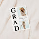 Erzählen Sie Ihren Meilenstein mit einer stilvollen Abschluss-Ankündigung, die modernes Design mit persönlichen Touchs verbindet. Auf der links Seite ist das Wort "Grad" auffallend in fett schwarzem Schriftart gestapelt, was eine deutliche visuelle Aussage schafft. Auf der rechten Seite zeigen Sie Ihre Reise mit zwei hochgehaltenen Bildern, eines oben und eines unten. In der Mitte, deutlich alle wichtigen Abschluss-Details präsentieren, sicherstellen, dass Familie und Freunde alle Informationen, die sie brauchen, um Ihre Leistung zu feiern. Diese elegante und durchdachte Ankündigung zeigt die Bedeutung Ihrer Leistung und teilt Ihre Freude mit denen, die Sie unterstützt haben.