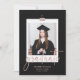 Schwarz und Rose Gold | Elegante Ankündigung des modernen Abschlusses. Diese stilvolle Abschluss-Ankündigungskarte verfügt über eine elegante Rose Gold-Script und zwei Fotos für die Personalisierung, 1 auf der Vorder- und Rückseite. Das Foto ist so konzipiert, dass es wie ein Vintager Schnappschuss aussieht, während es für den Absolventen von heute noch stilvoll ist.