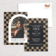 Die Ankündigung und Party Einladung des modernen karierten Abschlusses ist eine stilvolle und unverwechselbare Art, die Errungenschaften des Absolventen in Ihrem Leben zu feiern. Mit seinem zeitgenössischen Design und seinen individuell gestaltbaren Merkmalen verbindet diese Ankündigung Eleganz und Flair und ist somit die perfekte Wahl, um diesem Meilenstein zu gedenken. Die Vorderseite der Ankündigung weist einen auffallend bräunlichen und schwarz karierten Hintergrund auf, der als Hintergrund für ein Foto des Absolventen dient. Das Foto ist wunderschön gerahmt in einem weißen Bogen und hebt das Portrait des Absolventen mit Raffinesse hervor. Unter dem Bogen werden der Name und die Schule des Absolventen sichtbar angezeigt, was der Ankündigung eine persönliche Touch verleiht. Ein kleiner Graduiertendeckel, der geschickt in den karierten Hintergrund integriert ist, steht für den Erfolg des Absolventen, dessen Abschluss Jahr in subtiler Form eingeschlossen ist. Dreh die Ankündigung auf die Rückseite, wo ein Spaß passend geprüft Muster in goldbraunen und schwarzen Set die Bühne für die Abschlussfeier Einladung. Hier finden die Gäste alle Details, die sie brauchen, um an der Feier teilzunehmen und die Leistungen des Absolventen zu würdigen. Das durchdachte Design und die individuell gestaltbaren Elemente machen diese Ankündigung zu einer idealen Wahl für Paare, die gewollt haben, ihre Freude und Begeisterung auf moderne und einzigartige Weise zu teilen. Feiern Sie die Errungenschaften des Absolventen in Ihrem Leben mit der Ankündigung und Party Einladung des modernen karierten Abschlusses. Personalisieren, teilen und ehren Sie ihre Errungenschaften mit Stil und Flair.