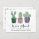 Lass deinen Freunden und der Familie deine neue Adresse mit dieser modernen Ankündigungskarte "Cactus" kennen. Dieses Design umfasst 3 Pflanze mit Topfkaktus. Originelle Kunstwerke, die mit digitaler Aquarellfarbe für Sie erstellt wurden. Der große "Zuhause Sweet Zuhause"-Text schafft ein cooles und überlagertes Bild, das sich in einem einzigartigen Kontrast zu den Bildern befindet. Vollständig anpassbarer Text, sehr einfach zu bearbeiten mit Ihren persönlichen Daten.