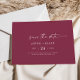 Diese moderne Aquarellkoordinate mit roter, horizontaler Save the Date-Karte eignet sich perfekt für eine stilvolle Hochzeit. Das schlichte bordeauxrote und weiße Design zeichnet sich durch eine einzigartige industrielle Schrift mit modernem boho Stil aus. Anpassbar in jeder Farbe. Behalt das Design minimal und elegant, wie es ist, oder personalisiere es durch Hinzufügen von eigenen Grafiken und Kunstwerken.