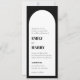 Diese moderne Bogeneinladung besticht durch fette Typografie. Das Design ist schwarz-weiß. Auf der Rückseite befindet sich ein QR-Code, der diese Einladung ganz einfach macht. Elegant und einfach.