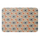 Mitte Jahrhundert moderne Atomdots Retro Muster Bath Mat. Niedliches, lustiges Design mit einer Mitte des Jahrhunderts Vintagen modernistischen Ästhetik. Ein Hinweis auf das Weltraumzeitalter und die Designstile der 1950er und frühen '60er. Die Farbtöne Orange, Marineblau und Beige sind ebenfalls vorhanden. Von Kierkegaard Design Studio.