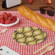 Moderne Atomtropfen Muster Mustard Mitte des Jahrh Pappteller