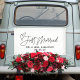 Ajoutez une touche de romantisme moderne à votre grande sortie avec notre design contemporain "Just Married", avec un motif de coeur charmant. Parfait pour la voiture de tourisme du couple, cette bannière élégante apporte une touche ludique et festive à votre départ, annonçant votre nouveau statut de mariée d'une manière mémorable. Faites preuve de style et laissez le monde célébrer votre amour avec cette délicieuse addition à votre décor de jour de mariage.