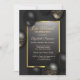 Eine moderne, schicke und glamouröse Einladung mit Ballons auf schwarzem Hintergrund.
