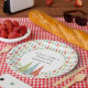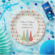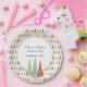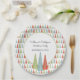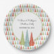 Erstellen Sie ein paar personalisierte Teller, die sich perfekt für Weihnachten und Feiertage eignen. Dieses Party liefert Illustrationen von Weihnachtsbäumen mit einem eleganten, modernen Stil in hellgrün, hellblau und rot vor einem weißen Hintergrund. Die Teller sind bereit, mit dem eigenen Text in einer Kombination aus Schrift und Druckschrift personalisiert zu werden.