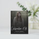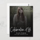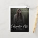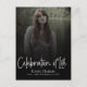 Diese moderne Begräbnispostkarte geht über herkömmliche Fotos hinaus und erlaubt Ihnen, eine bedeutsame und personalisierte Hommage zu schaffen. Das Skript der 'Feier des Lebens' ist eine Ebene über dem Foto und schwarzen Farbverlauf.