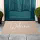Modernes Script Minimalistische Begrüßungstürmatte mit bearbeitbaren Farben (klicken Sie auf die Hintergrundfarbe anpassen und ändern). Personalisieren Sie es, indem Sie den Platzhalter-Text ersetzen. Für weitere Optionen, wie zum Beispiel den Schriftart zu ändern, ist es die Größe, Abstand zwischen Buchstaben oder Zeilenabstand klicken Sie auf die Schaltfläche "Anpassen". *Bitte beachten Sie, dass das Zazzle-Wasserzeichen, das in der Zoomvorschau angezeigt wird, NICHT auf dem gedruckten Endprodukt erscheint. © Rosewood and Citrus