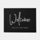 Modernes Script Minimalistische Begrüßungstürmatte mit bearbeitbaren Farben (klicken Sie auf die Hintergrundfarbe anpassen und ändern). Personalisieren Sie es, indem Sie den Platzhalter-Text ersetzen. Für weitere Optionen, wie zum Beispiel den Schriftart zu ändern, ist es die Größe, Abstand zwischen Buchstaben oder Zeilenabstand klicken Sie auf die Schaltfläche "Anpassen". *Bitte beachten Sie, dass das Zazzle-Wasserzeichen, das in der Zoomvorschau angezeigt wird, NICHT auf dem gedruckten Endprodukt erscheint. © Rosewood and Citrus