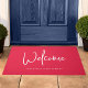 Modernes Script Minimalistische Begrüßungstürmatte mit bearbeitbaren Farben (klicken Sie auf die Hintergrundfarbe anpassen und ändern). Personalisieren Sie es, indem Sie den Platzhalter-Text ersetzen. Für weitere Optionen, wie zum Beispiel den Schriftart zu ändern, ist es die Größe, Abstand zwischen Buchstaben oder Zeilenabstand klicken Sie auf die Schaltfläche "Anpassen". *Bitte beachten Sie, dass das Zazzle-Wasserzeichen, das in der Zoomvorschau angezeigt wird, NICHT auf dem gedruckten Endprodukt erscheint. © Rosewood and Citrus