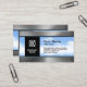 Techischer Stil kühn auf der Grundlage von Imitaten Metalloberfläche und Bild von Himmelswolken. Platz für Logo und QR-Code, um die Karte digital zu machen. Benutzen Sie das vorhandene Logo oder ersetzen Sie es durch Ihr eigenes. Ideal für Drohnendienste, Luftfilmung und Fotografie.