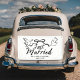 Mit unserem modernen "Just Married" Design können Sie Ihren Urlaubswagen mit Spaß versehen! Dieses Design verleiht Ihrem Hochzeitstag ein spielerisches und Vintages Ambiente und macht ihn zu einer unvergesslichen und einzigartigen Ergänzung Ihres Festes. Egal ob Sie durch die Straßen der Stadt oder durch die Landstraßen fahren, dieses charmante Design wird sicher jedem ein Lächeln auf die Stirn bieten, wenn Sie auf Ihre neue Reise gehen.