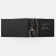 Dieses elegante Gästebuch besticht durch ein schwarzes Aquarell-Design, das mit Imitate Rose Gold Glitzer besticht. Pink-Rose auf schwarzem Hintergrund leicht anpassen, mit den Namen der Braut und des Bräutigams in skurriler Kalligraphie in Handschrift über einen großen grauen Ampersand. Fügen Sie dem Vorder- und Rückgrat einen zusätzlichen Text Ihrer Wahl hinzu.