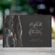Moderne Black Agate Rose Gold Script Dark Gästebuch