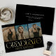 Diese moderne Drei-Foto-Abschluss-Ankündigung zeichnet sich durch elegante Typografie "Graduate" in erhöhter Goldfolie mit drei Fotos auf schwarzem Hintergrund aus. Auf der Rückseite gibt es Einladungstext für Graduierungsparty / Open House, das auch gelöscht werden kann, wenn nicht nötig. Hintergrund- und Textfarben sind individuell einstellbar. Dieses schlichte und dennoch elegante Design erlaubt es Ihren Fotos, durch den minimalen behalt der Details zu glänzen.