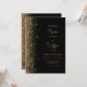 Die links Kulisse dieser modernen Hochzeitseinladung besticht durch ein goldenes Imitat-Glitzer-Design. Der anpassbare Text kombiniert goldfarbenes Skript und singt serifenlose Schriftart auf schwarzem Hintergrund. Die Rückseite weist ein passendes Schwarz-Gold-Glitzer-Design auf.