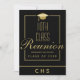 Schicken Sie Ihren 10. Klasse Wiedersehen-Klassenkameraden unsere moderne Einladung mit einer Flachkarte. Dieses elegante Design-Template verfügt über einen schwarzen Hintergrund mit Imitaten goldenen Typografie, die "10th Class Wiedersehen" mit Ihrem Schulnamen und Jahr zu personalisieren Unten ist das Monogramm Ihrer Schule. Die Rückseite der Karte enthält mehr von Ihren Feierlichkeiten Details, die Sie anpassen können. Entworfen von dem weltbekannten Künstler ©Tim Coffey.